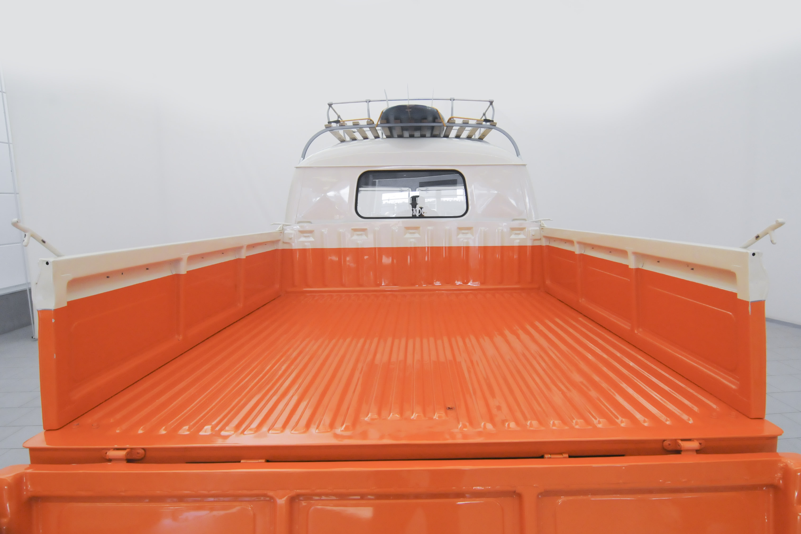 Optisch begeistert die Doppelkabine mit ihrer seltenen und äußerst attraktiven Lackierung in Tangelo-Crème, die sie zu einem echten Blickfang macht. Kein Wunder, dass der Vorbesitzer das Fahrzeug auf zahlreichen Shows in Kalifornien präsentierte und dort mehrfach auszeichnete.