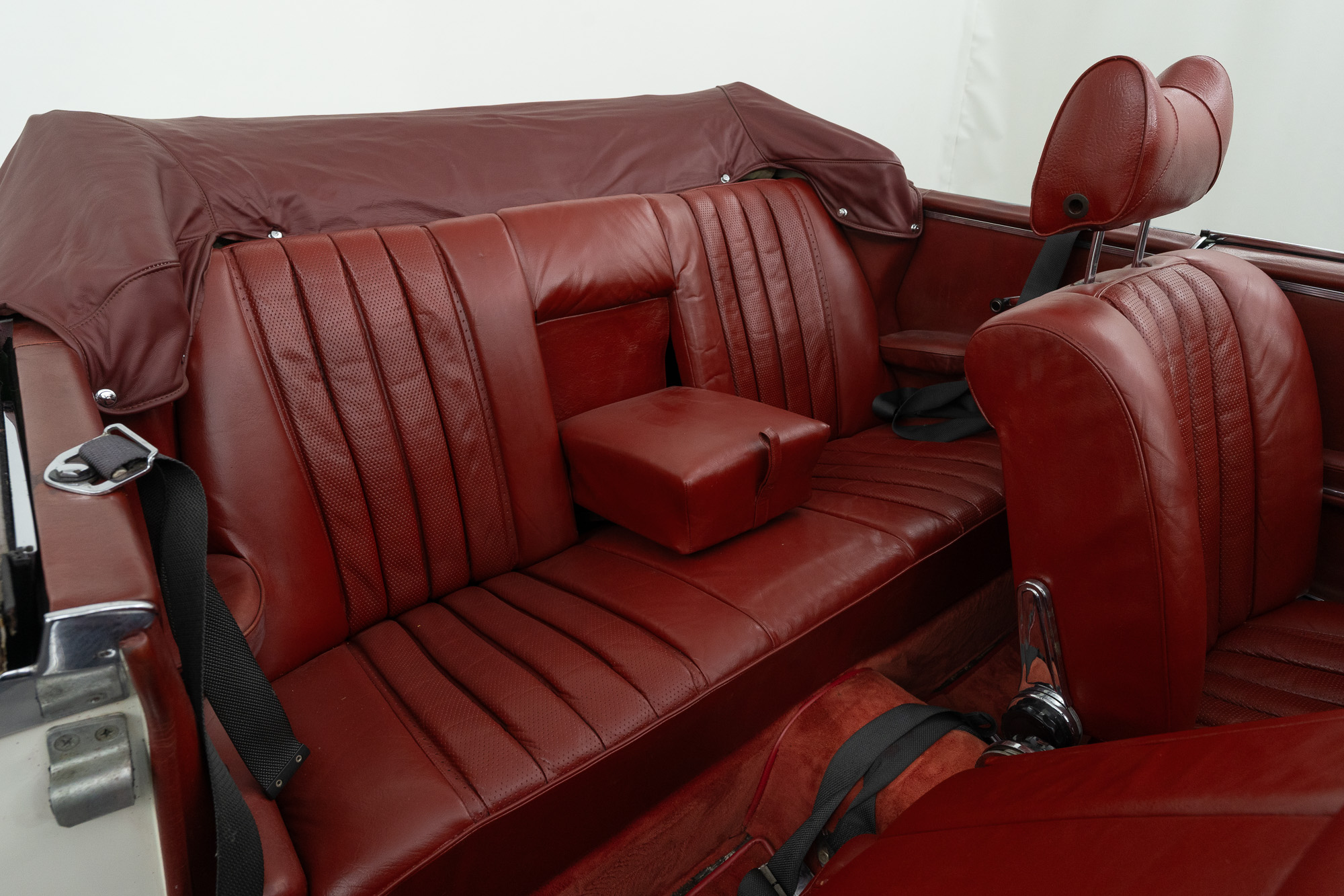 Das elektrisch betätigte Verdeck verschwindet elegant unter einer Abdeckung und eröffnet den Blick auf einen mit Leder und Edelholz veredelten Innenraum, der den Anspruch dieses Klassikers als stilvolles Reiseautomobil unterstreicht.