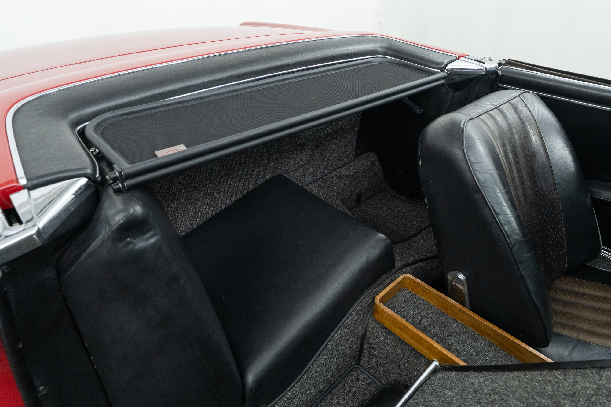 Die Ausstattung umfasst unter anderem eine hochwertige Lederausstattung, einen Notsitz, einen Außenspiegel auf der Beifahrerseite, ein Armaturenbrett mit Holzapplikationen sowie ein Retro-Autoradio mit Heckantenne. Das Fahrzeug wurde vor längerer Zeit restauriert, wobei auf den Erhalt der Originalität und des klassischen Erscheinungsbildes Wert gelegt wurde.