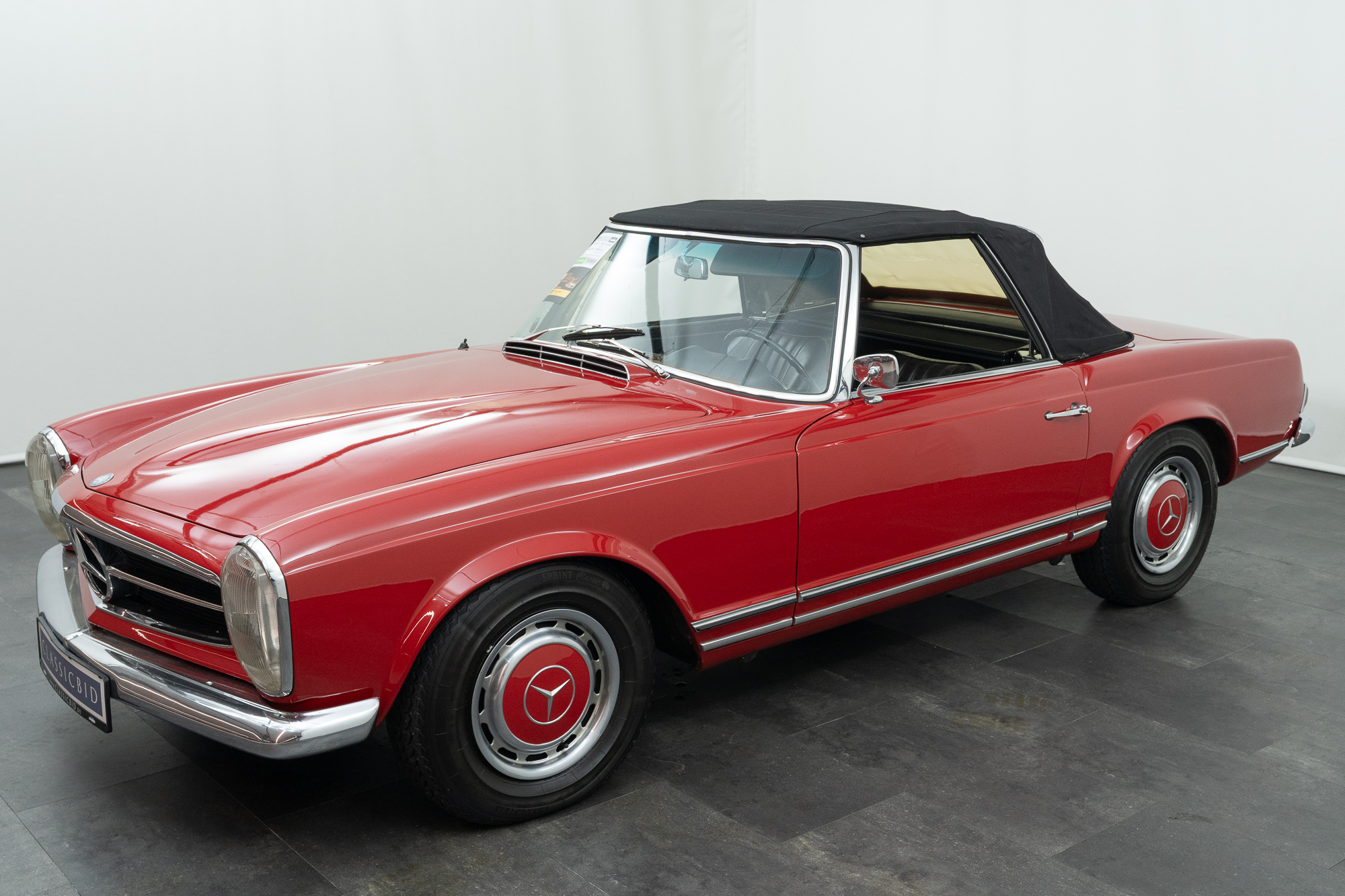 Angeboten wird ein Mercedes-Benz 230 SL „Pagode“, erstzugelassen im Oktober 1963, aus der frühen Bauphase der Baureihe W113. Das Fahrzeug präsentiert sich als klassischer Roadster mit zeitloser Linienführung und hoher Wertstabilität.