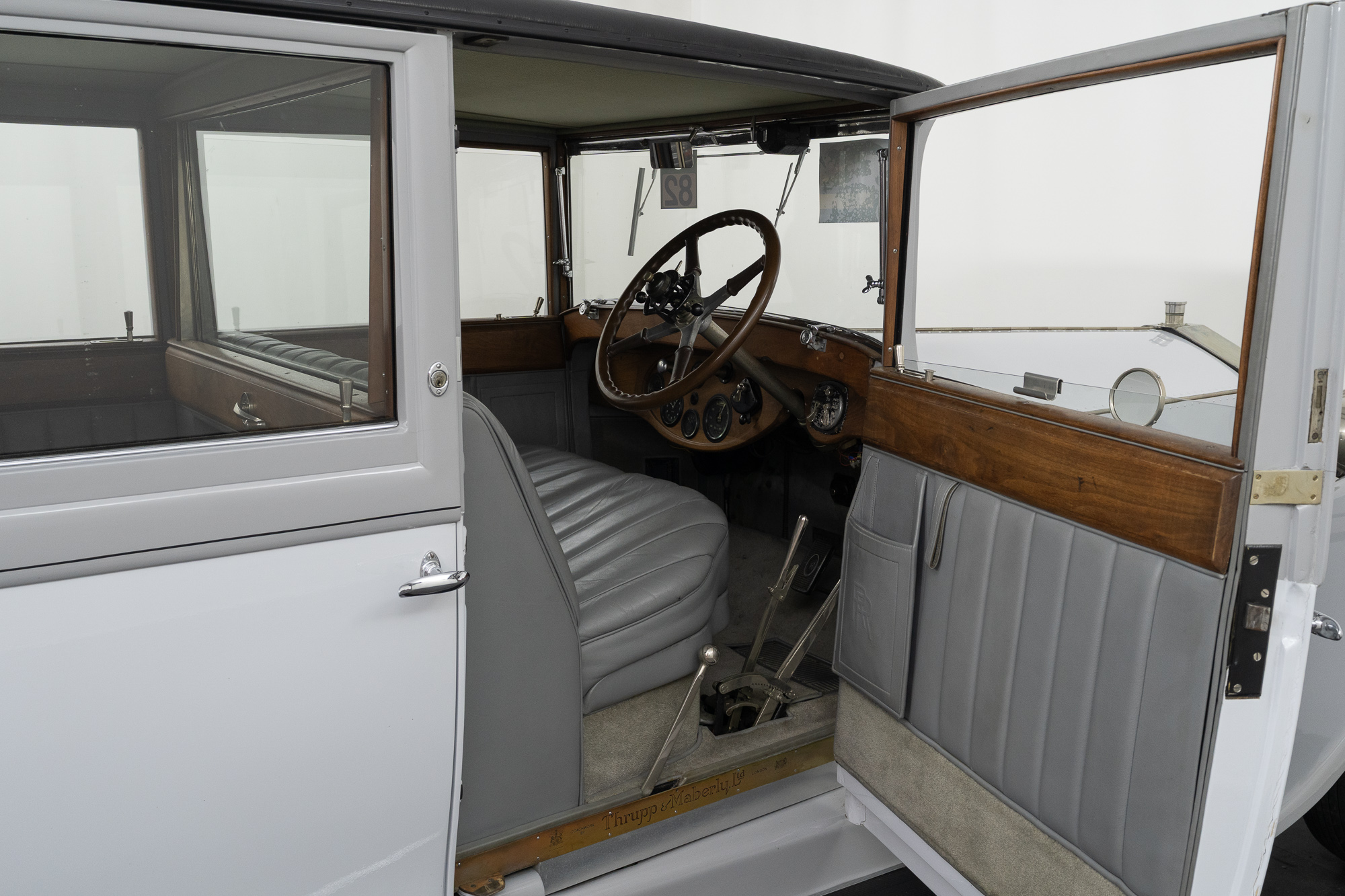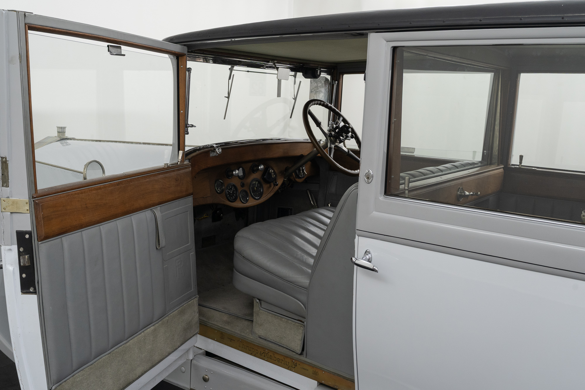 Die exquisite Landaulet-Karosserie stammt von Thrupp & Maberly, einem der renommiertesten Karosseriebauer seiner Zeit und enger Partner von Rolls-Royce. Typisch für diese Karosserieform ist die klare Trennung zwischen Fahrer- und Passagierabteil: Das Chauffeurabteil ist durch eine Trennwand mit Kurbelfenster vom großzügigen hinteren Salon separiert. Das Dach über dem Passagierabteil ist klappbar und ermöglicht so ein offenes Fahrerlebnis ähnlich einem Cabriolet, während sämtliche seitlichen Scheiben per Kurbel versenkbar sind.