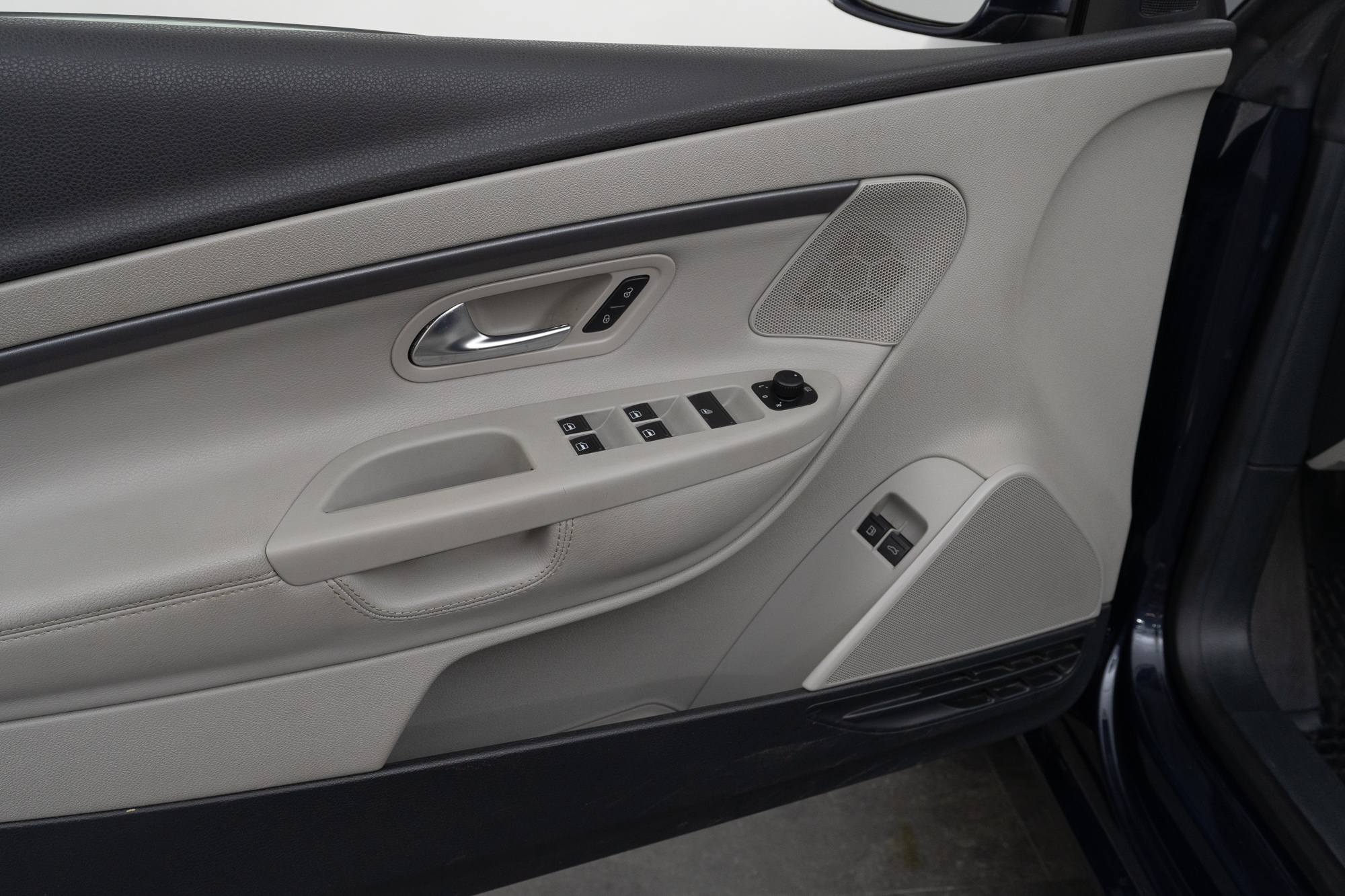 Leather steering wheel, gray leather center armrest