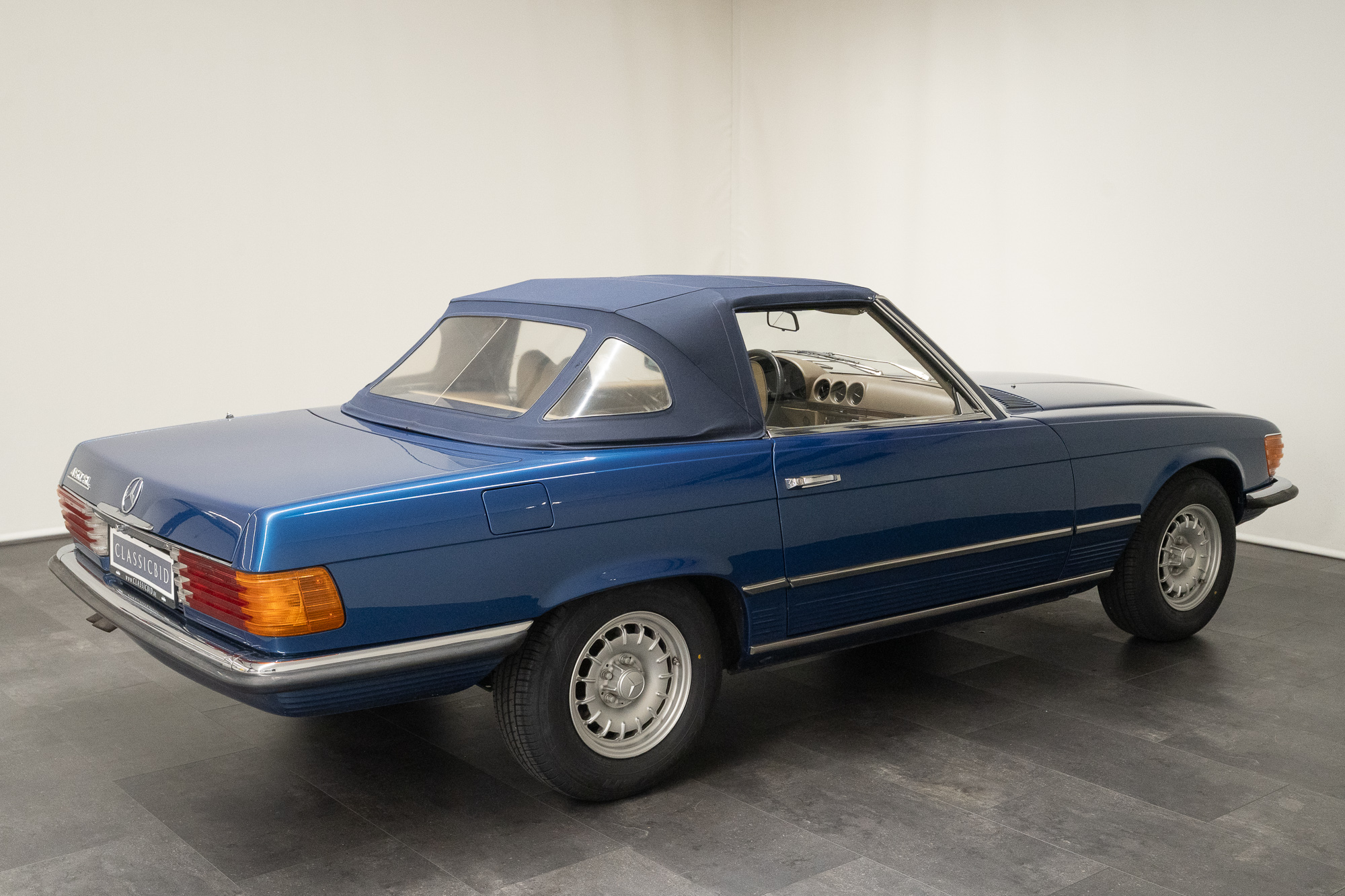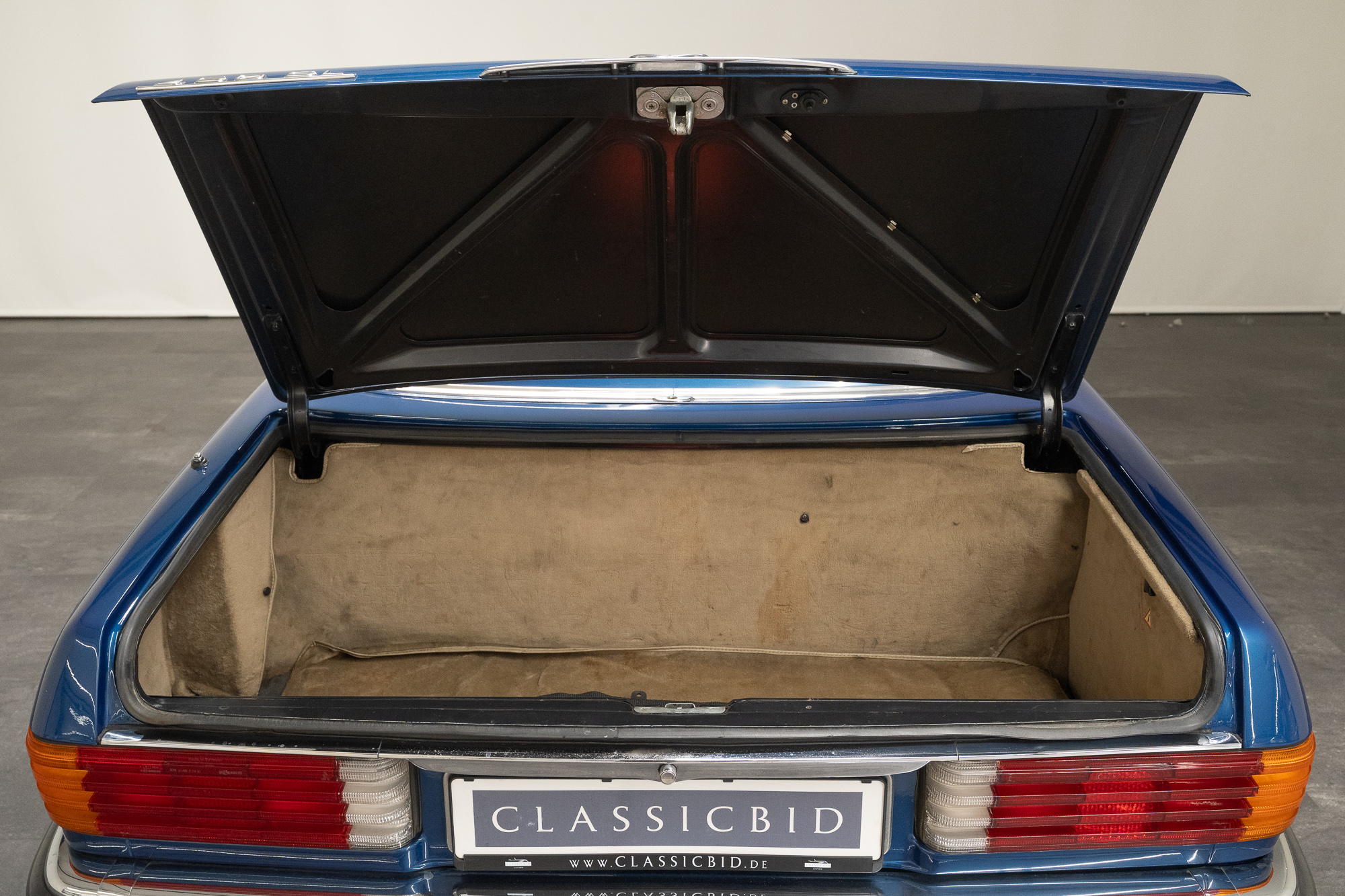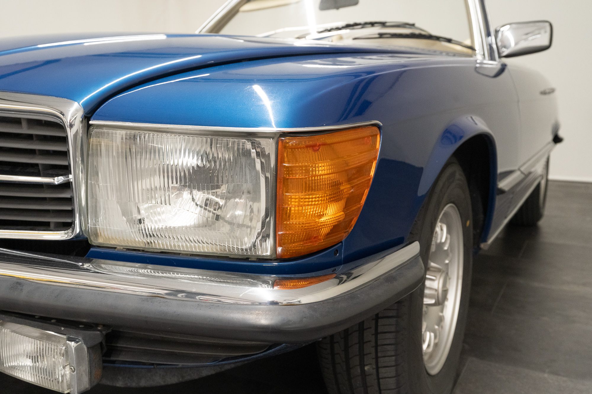 Based on the R107, Mercedes created a sports coupé with the series designation C107, which was first presented in 1971 and marketed as SLC. The SLC’s wheelbase was a full 36 cm longer than that of the SL. The coupé was a 5-seater, slightly heavier than the convertible, but the better drag coefficient made up for that, their top speed was identical. Its distinguishing styling cues were the very large, curved rear window and the slats in the back – born out of necessity in order to fully lower the rear side windows.