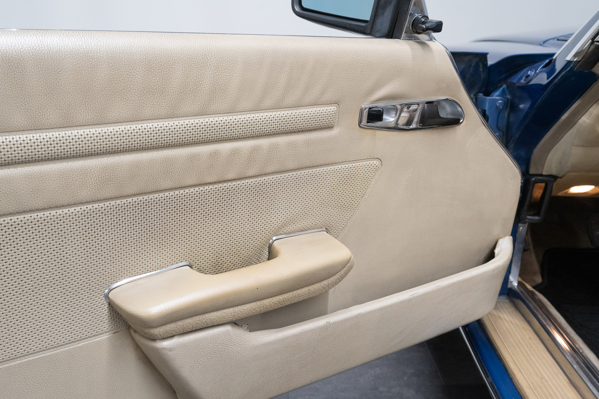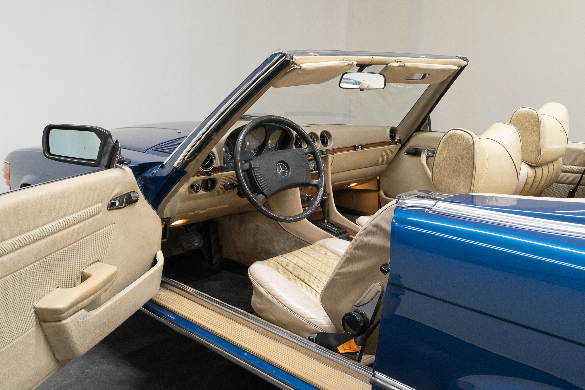 The original interior is in undamaged, very good condition. The leather upholstery shows a slight patina.